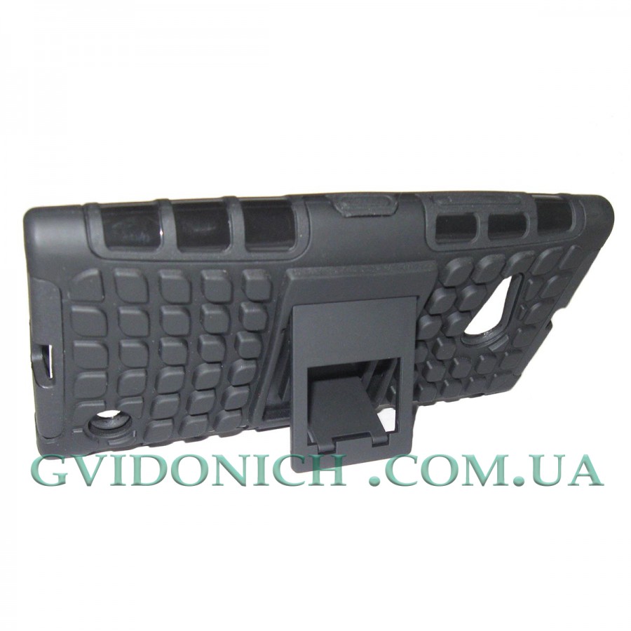 Продумана конструкція дозволяє легко дістатися до усіх кнопок, управління і портів без необхідності знімати чохол. Цей чохол може трансформуватися у вигляді підставки для комфортного перегляду відео і інтернет серфінгу. Гібридний чохол виготовлений з щільного силікону внутрішня частина і армованого пластика зовнішня частина. Підставка знімна.