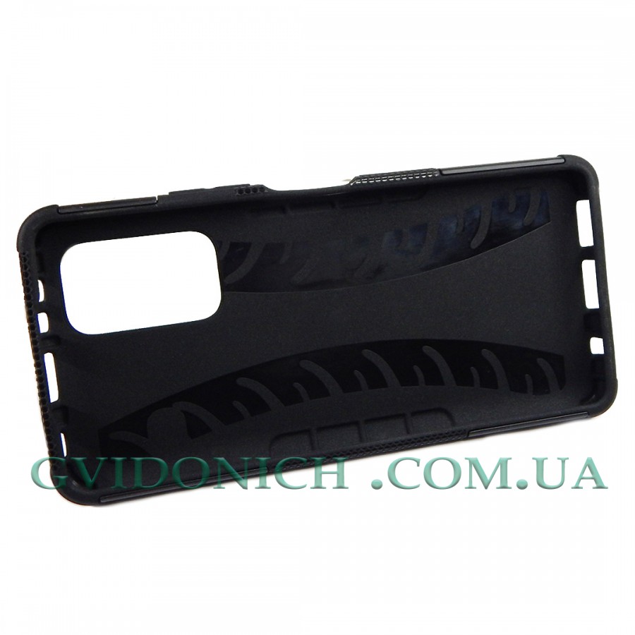 Продумана конструкція дозволяє легко дістатися до усіх кнопок, управління і портів без необхідності знімати чохол.Цей чохол може трансформуватися у вигляді підставки для комфортного перегляду відео і інтернет серфінгу. Гібридний чохол виготовлений з щільного силікону внутрішня частина і армованого поликарбонатового пластика зовнішня частина. Підставка знімна.